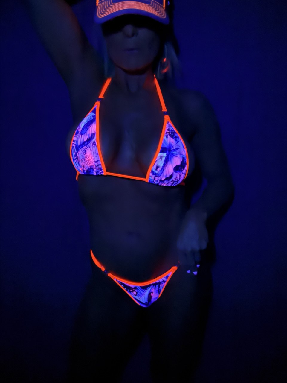 Signature halter/triangle style top with the sparkle built in! Tie back and neck for a customizable fit. Tagged with Room 77 Logo for those in the know.